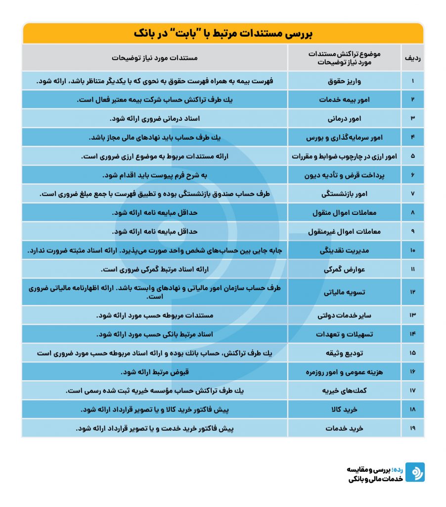 - بخش ششم بخشنامه پولشویی بانک مرکزی: بررسی مستندات مرتبط با “بابت” در بانک