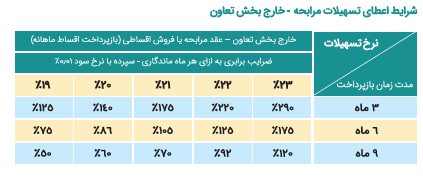 | نرخ سود وام | 23 ٪ نرخ سود این تسهیلات 19-23 درصد است |