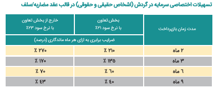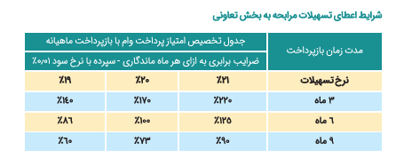 | حداکثر زمان بازپرداخت | 9 ماه حداکثر زمان بازپرداخت طی دورههای 3 الی 9 ماهه است. |